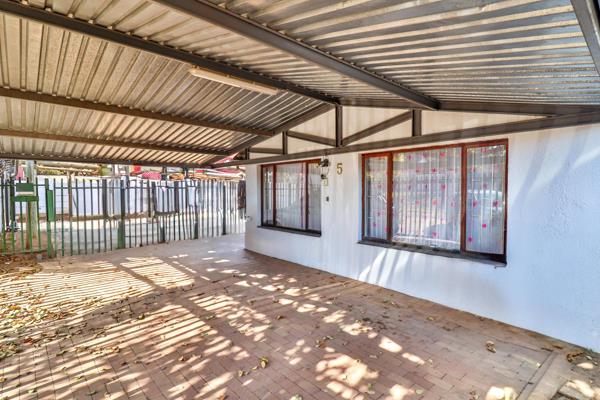 6 bedrooms, 3 bathrooms, main bedroom en-suite, open plan dining room, reception area and sitting room. Double carports with automatic motor gate and enough space for extra cars as well. All bedrooms have units built in. Main house does not have a prepaid electricity