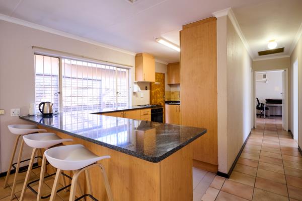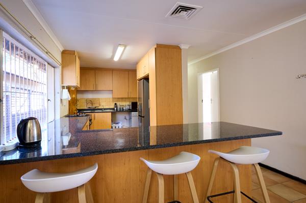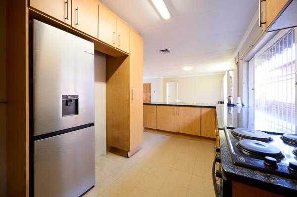- Spacious open plan kitchen with granite counter tops, plumbing for all your appliances and space for a double door fridge. Breakfast nook with under counter oven and stove top