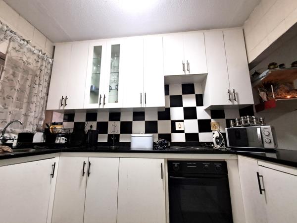 The kitchen includes space for two appliances and is adjacent to a dedicated laundry area for added convenience. One lock-up garage provides secure parking and extra storage. Residents also enjoy the communal clubhouse with swimming pool and braai facilities great for weekends and entertaining friends.