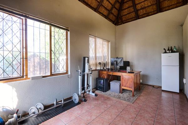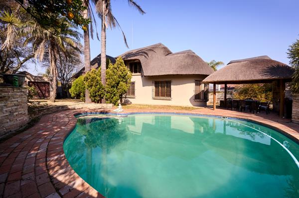The outdoor space is a true highlight a big, fully walled garden with electric fencing and plenty of parking, a sparkling pool with thatch gazebo, and established lemon trees. Additional features include a double garage, domestic quarters, a storeroom, and a separate toilet.