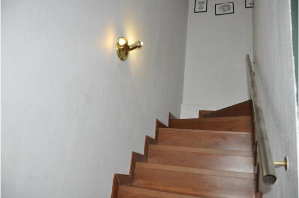 Two spacious bedrooms upstairs. One family bathroom upstairs with a bathtub, shower, loo, and basin. The entire house apart from bathrooms has laminated flooring.