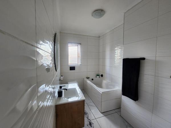 THIS STYLISH, NEAT FAMILY HOME IS WITH VIEWING, IT OFFERS 3 BEDROOMS , 2 FULL BATHROOMS, GUEST TOILET ,KITCHEN OVERLLOKING LOUNGE AND DINING ROOM, STEPPING INTO THE ENCLOSED PATIO WITH BUILD IN BRAAI.