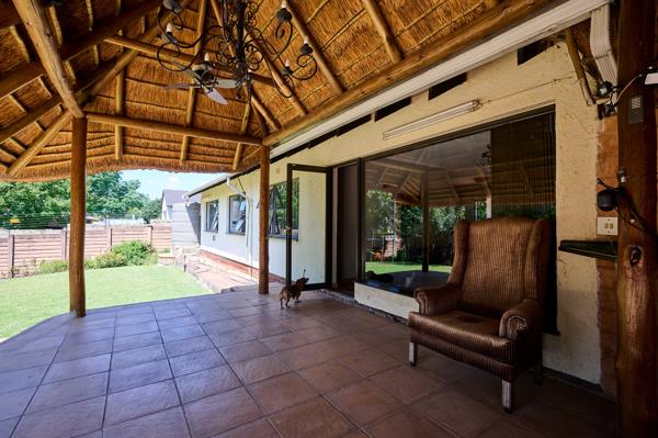 Setting this property apart is its commitment to sustainable living. The home is equipped with a solar power system comprising fourteen panels and a 10KW battery along with a private borehole linked to a large water tank that is plumbed into the house offering filtered, municipal and borehole options. Security is paramount, with electric fencing and garden beams providing total peace of mind. Finished with low-maintenance aluminium window frames and offering additional exterior storage and an outside bathroom.