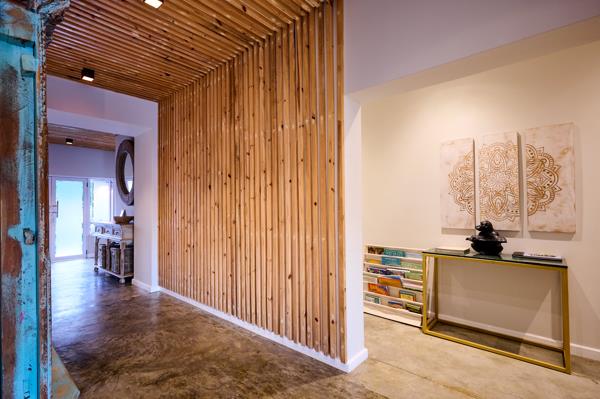 The home offers three bedrooms, all with laminated flooring. The main suite includes a walk-through dressing area and a full en-suite bathroom, while the family bathroom mirrors its design with contemporary screed finishes and custom vanities.