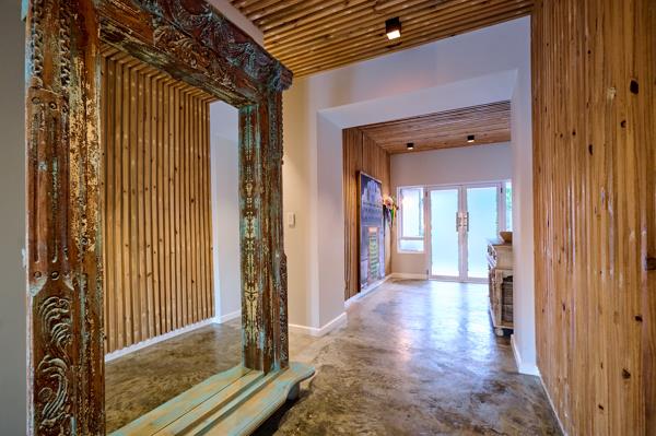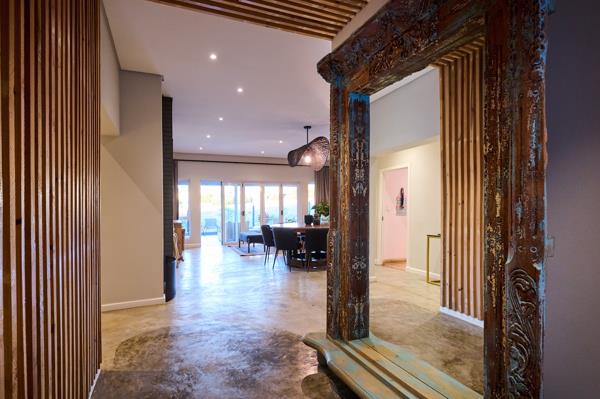 Additional highlights include a 5 kW Sunsynk inverter, 5 kWh battery, and 6 solar panels, ensuring seamless power continuity. The double garage with built-in cupboards provides excellent storage, and the home is enclosed on two sides, offering privacy while staying open to the natural surroundings.