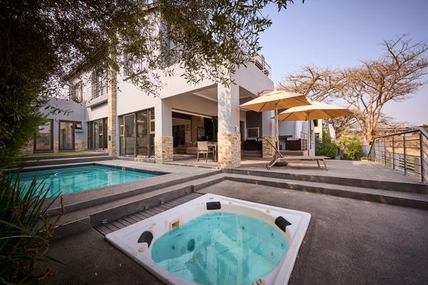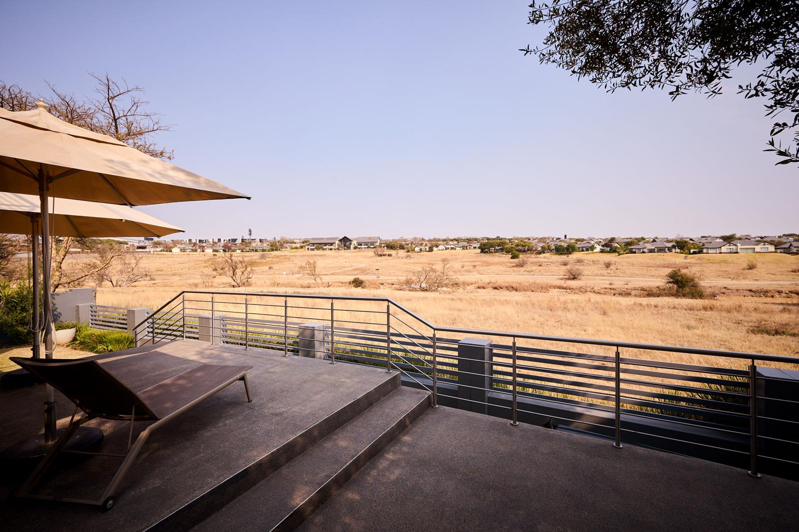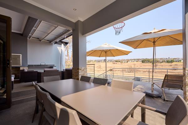 The open plan living spaces with abundant natural light and atrium, create a welcoming atmosphere. The kitchen is a culinary dream, boasting built-in SMEG appliances and a large island, with doors that open up to the patio with built-in gas Braai and river views. The open-concept living and dining areas are ideal for both intimate gatherings and grand celebrations.
