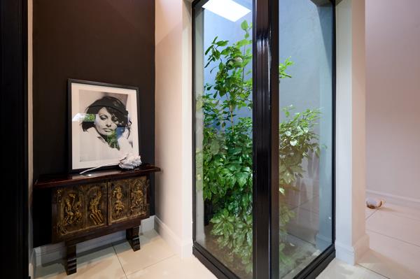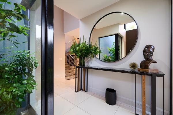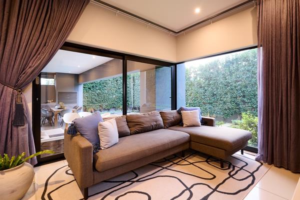 From the covered patio, with its built-in wood and gas braai, the heated pool looks so inviting! Flanked by lush lawn and manicured hedges, the privacy from neighbours is absolute. Irrigated and beautifully lit at night, the garden becomes a magical space to entertain and enjoy.