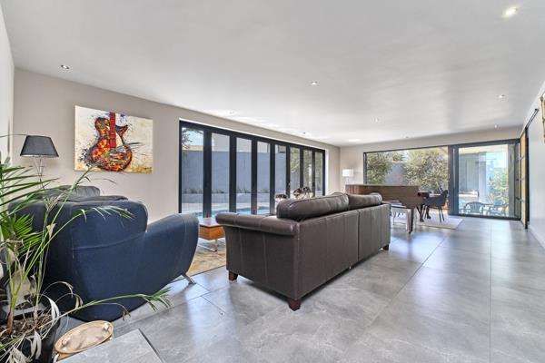 The downstairs living areas flow seamlessly together with sliding and stacking doors allowing light to flood in.