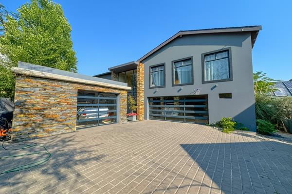 Discover an architectural masterpiece nestled within the prestigious Waterfall Country Village, Midrand. This contemporary residence, spanning an impressive 595 sqm on an 893 sqm erf, presents an unparalleled fusion of sophisticated design and luxurious living. From its striking grey facade with elegant stone cladding to the multiple garages featuring modern glass doors and a grand paved driveway, the property exudes exceptional kerb appeal. Step inside to an opulent entrance hall, where soaring ceilings, marble-look tiled floors, and a dazzling modern chandelier set a tone of refined grandeur, offering a tantalising glimpse into the expansive living spaces.