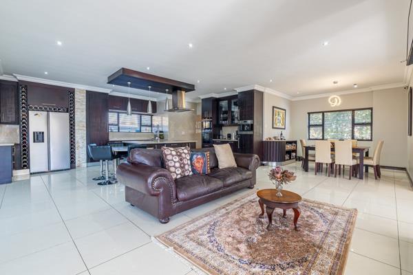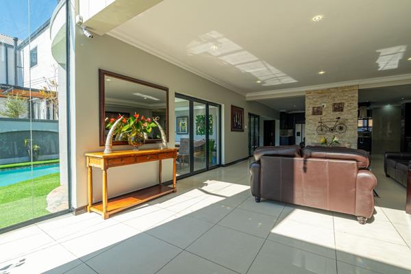 The outdoor area is further enhanced by a fire boma, jacuzzi, koi pond, and a well-established garden that adds to the homes tranquil atmosphere.