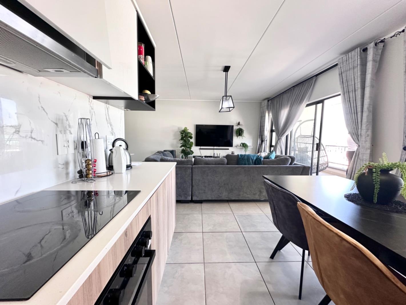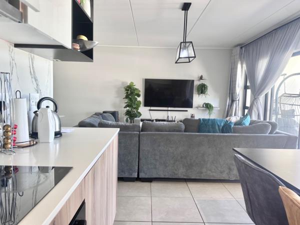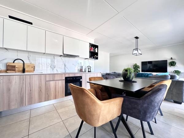 The open-plan living and dining areas seamlessly connect to a modern kitchen, perfect for entertaining or family gatherings.