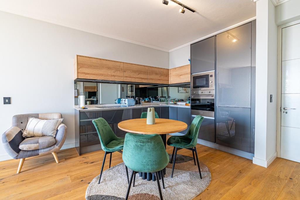 Step into contemporary elegance with this beautifully designed, fully furnished 2-bedroom, 2 en-suite bathroom apartment on the 7th floor of the sought-after Ellipse Towers. West-facing and filled with natural light, this home offers comfort, style, and access to world-class amenitiesideal for professionals, couples, or small families. The apartment features top-quality finishes throughout, including Hansgrohe fittings, a modern high-gloss kitchen with Caesarstone countertops, and a double sink with mixer. Cooking is a pleasure with fully integrated Smeg appliances: an electric hob and extractor, fridge/freezer combo, microwave, dishwasher, and a washer/dryer combination. High ceilings and expansive sliding doors in the bedrooms and living areas open onto a spacious covered balcony and private garden, perfect for relaxing or entertaining.