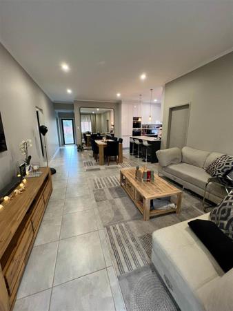 Which has 3 bedrooms all with BIC with the main en-suite, a comfortably sized kitchen, a solar geyser, and ample cupboard space. The house features an open-plan lounge and dining area that greets you at the entrance hall with a Wall size Mirror leading through to the spacious covered patio, stack doors, a private and weekly maintained garden, and a built-in braai that''s great for hosting.