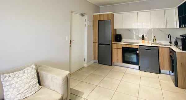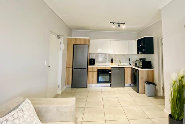 This stunning, stylish and modern one bedroom apartment awaits its new owner. If you''re looking for convenience, and a lock up and go lifestyle in a security estate, then look no further. This one bedroom apartment with ensuite bathroom, open plan kitchen, dining and living area leads out onto a spacious undercover patio with double balcony. The Scandinavian style kitchen is equipped with eco friendly Defy appliances ( fridge/freezer, dishwasher and washing machine/dryer combo and fitted hob and undercounter oven).