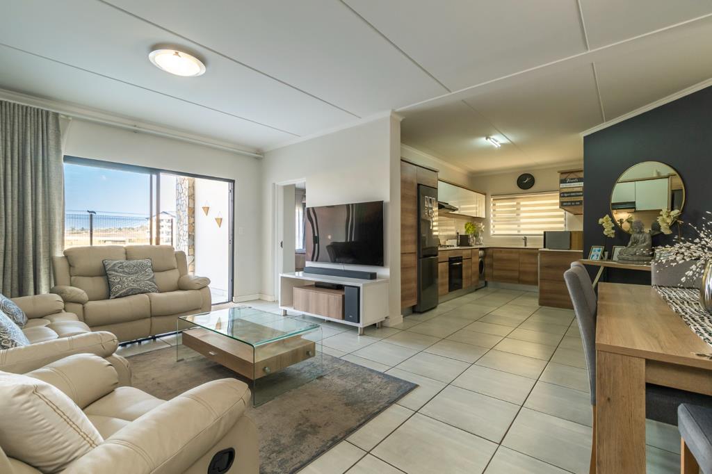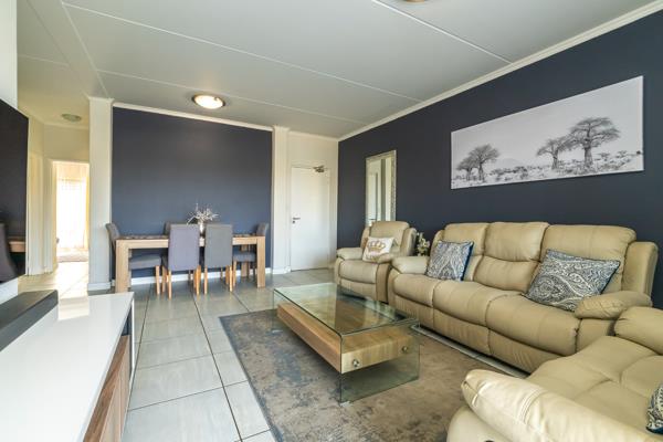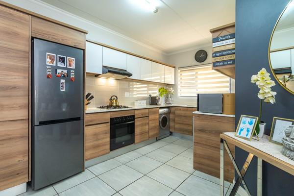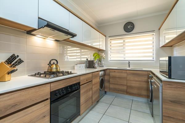 Nestled in the serene setting of Kikuyu, this ground-floor apartment offers a tranquil lifestyle with direct views of the eco-park and its picturesque dam. The spacious open-plan kitchen is equipped with a modern gas stove and has ample space for three appliances, making it ideal for both everyday living and entertaining.