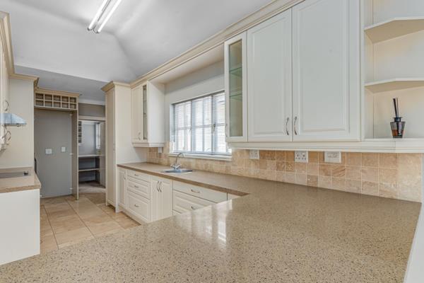 The modern kitchen , featuring quality appliances, Caesar stone counter tops, ample storage and It has a separate scullery with direct access to the large private courtyard and double garage.