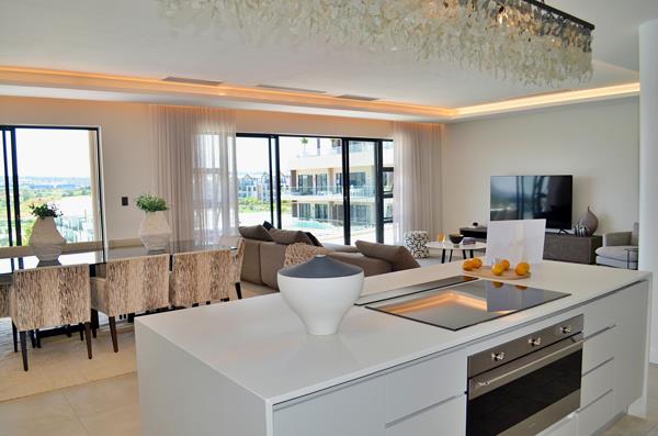 This stylishly fully furnished three-bedroom signature penthouse apartment, situated on the fourth floor of the sought-after Munyaka Estate in Waterfall City, makes you smile from the minute you walk in the door.