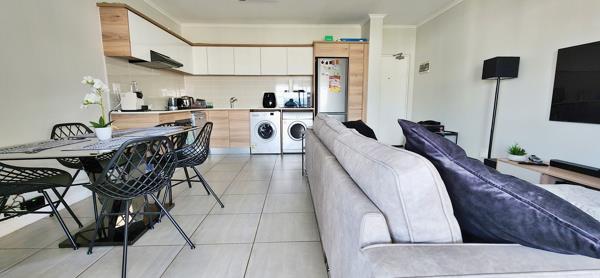 Step into the open-plan kitchen, beautifully finished with warm wood-accent cabinetry and fully fitted with Defy appliances perfect for effortless living and entertaining. The kitchen flows seamlessly into the dining and lounge area, leading out to a private balcony where you can unwind and enjoy gorgeous views of the Waterfall skyline.