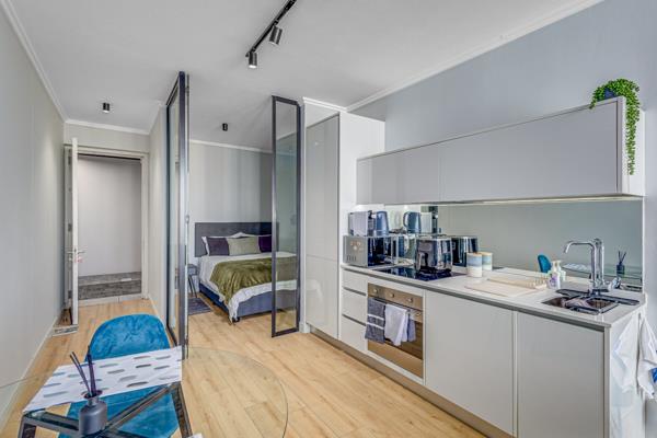 New to market ! Turnkey solution for investors and professionals looking for the ideal property provides the perfect Waterfall City investment complete with furniture additionally available at a reasonable cost. Designed meticulously and fitted with an aircon unit for your convenience, the east-facing positioning ensures a copious amount of morning sun. Designed for elevated modern living and located in Waterfall Citys first residential high-rise, this one-bedroom, one-bathroom apartment offers views of the vibrant piazza and is enhanced by elegant wall paneling and practical furnishing. The spacious living area features high-gloss cabinetry, Caesarstone countertops, and Hansgrohe fittings, complemented by imported tiles and plenty of natural light. The kitchen is equipped with top-of-the-line integrated Smeg appliances, including a hob, extractor, fridge/freezer combo, and washer/dryer. The enclosed bedroom offers ample cupboard space and a sleek en-suite with a modern shower.