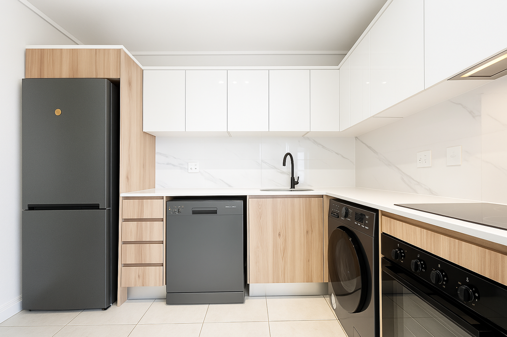The kitchen is designed with modern amenities to enhance your culinary experience.