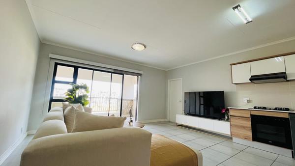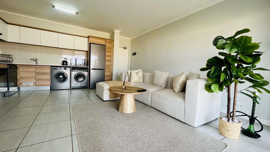 Discover the pinnacle of luxury living in this stunning 1-bedroom, 1-bathroom top-floor apartment located in the prestigious Waterfall area of Johannesburg. Situated within a classic lifestyle estate, this exquisite residence showcases a sophisticated Scandinavian-style kitchen, complete with eco-friendly appliances. Enjoy the serene ambiance of a charming balcony that overlooks the greenbelt, providing a perfect setting for outdoor entertaining. Additionally, the apartment features solar-supplemented electricity and pre-paid water and electricity meters, ensuring both convenience and cost-efficiency.