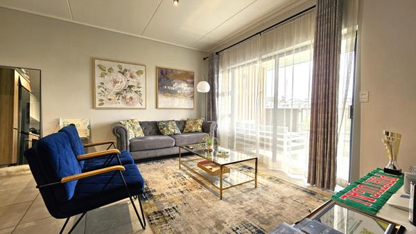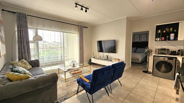 Located in the vibrant Waterfall suburb of Midrand, South Africa, this modern apartment offers convenient living within a sought-after complex known for its modern developments and accessibility. This 61 sqm residence presents an open-plan design, seamlessly connecting the kitchen and lounge area.