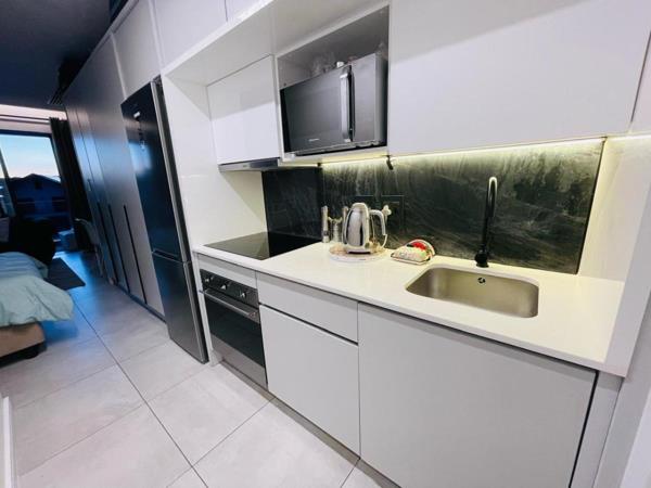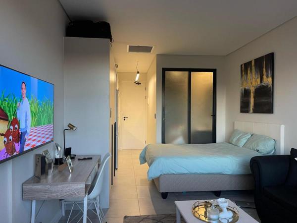 This stylish open-plan apartment features a combined bedroom, lounge, and kitchen with modern finishes, including built-in cupboards, an undercounter oven, hob, and extractor fan. It offers a private en-suite bathroom, air-conditioning, and a patio with space for a portable braai. Secure parking for one vehicle is included. Located in a twenty-four-hour guarded complex with CCTV and remote gate access, residents enjoy access to a lifestyle centre with a gym, spa, restaurant, cinema, free Wi-Fi, and more. The unit is vacant on transfer with a rental potential of R11 500.00 per month. Sold fully furnished.