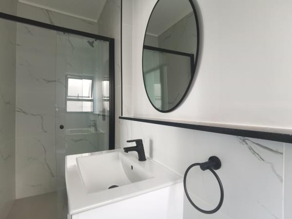 The main bedroom has built-in cupboards with ample space. The en-suit bathroom has modern finishes.