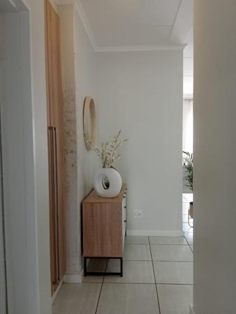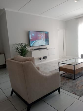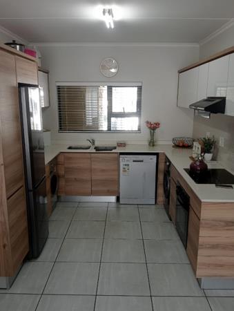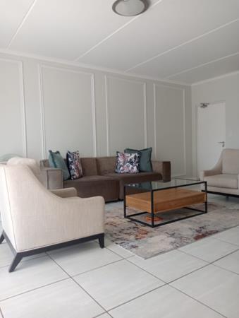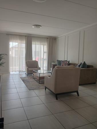 Discover an unparalleled lifestyle within this exquisite 110 sqm residence, perfectly situated in the esteemed Kikuyu Lifestyle Estates in Waterfall, Midrand. The contemporary design ethos is immediately evident, with a neutral colour palette and elegant tiled flooring flowing seamlessly throughout the expansive living and dining areas. Sophisticated wall paneling adds refined architectural detail, creating an inviting ambiance for both relaxation and entertaining.