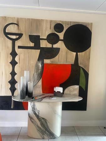 The stylish open-plan kitchen is fitted with integrated SMEG appliances and flows seamlessly into a spacious living area. Sliding doors open onto a large covered patio with a built-in braai, extending into a private garden ideal for children and fur babies to enjoy safe outdoor play and relaxed entertaining.
