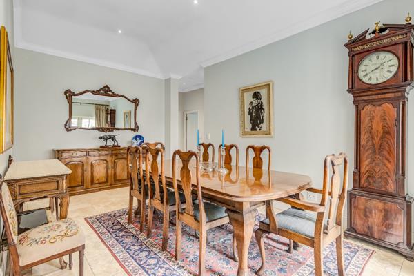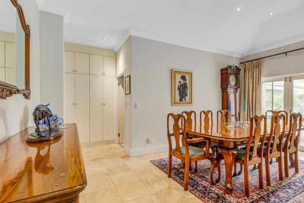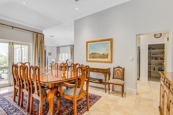 The interior opens to a spacious living area which flows into a large dining room, creating an inviting setting for entertaining. The kitchen is thoughtfully located adjacent to the dining area and is supported by a separate scullery and walk-in pantry, offering both practicality and an uncluttered living environment.