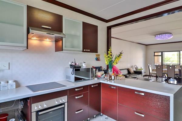 This beautiful 3-bedroom 2-bathroom ground floor apartment is situated in a safe and secure modern complex. The modern kitchen boasts granite counter tops and space for a double-door fridge and 3 appliances. Additional cupboards have been added for extra storage. There is a glass-top hob with undercounter oven.