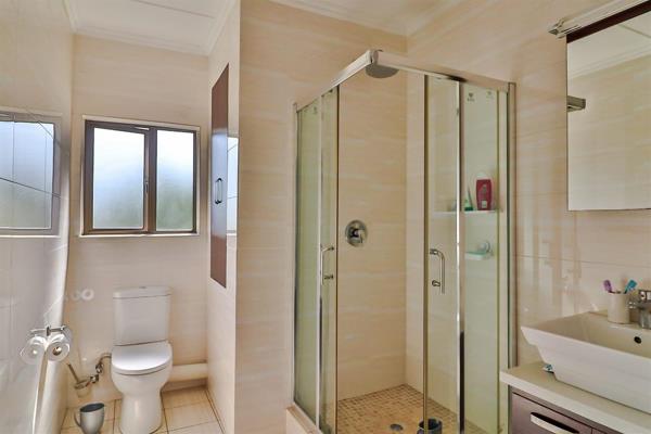A passage with additional cupboards for storage, leads to the bedrooms. The main bedroom has ample cupboard space and bay windows and an en-suite full bathroom. The second bedroom is spacious with bics. The third bedroom can be used as a bedroom or a WFH office. It also has bay windows. All bedrooms and the kitchen have blinds. The second bathroom has a shower only. There are 2 parking bays allocated to the apartment.