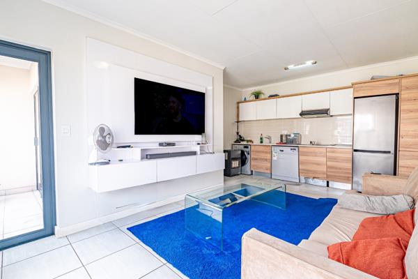 The apartment features a modern open-plan layout, with a stylish kitchen fitted with quality finishes, ample cupboard space, and space for essential appliances. The kitchen flows effortlessly into the living area, creating a warm and inviting space that works perfectly for both everyday living and entertaining. Large windows allow for an abundance of natural light, enhancing the sense of space and comfort throughout the unit.