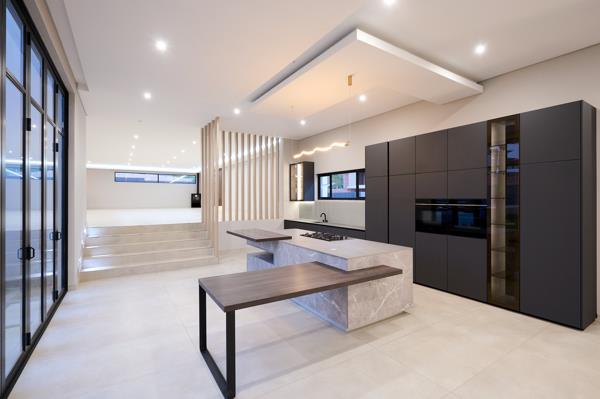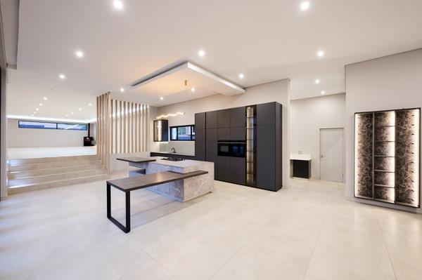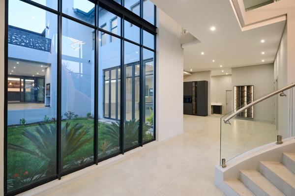 Set on an expansive 1,300 square meter erf, the architectural layout delivers nearly 1,000 square meter of thoughtfully curated space. With five sumptuous bedrooms and five luxurious bathrooms, each element has been designed to balance opulence with comfort and a tranquil sense of home. A guest bedroom with its own stylish full bathroom downstairs is perfectly suited to extended family or frequent visitors.