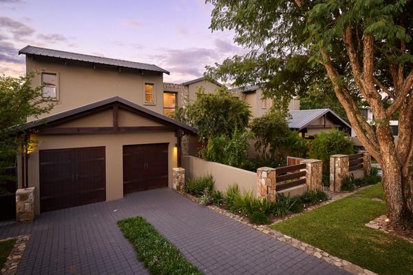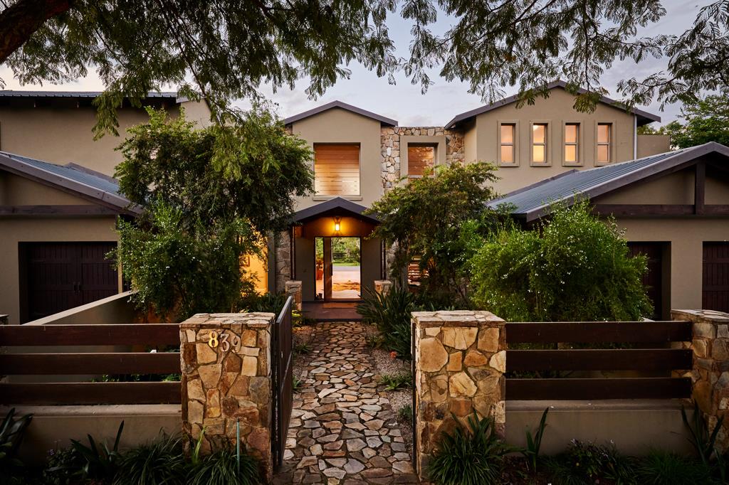 The home includes a double garage on one side of the entrance, and an extra length, third garage on the other. The guest bedroom can also be used as a well-appointed staff quarters comprising a bedroom, full bathroom, and kitchenette. Eco-conscious features include a borehole with reverse osmosis filtration, as well as a solar panel, inverter and battery system to support off-grid living.