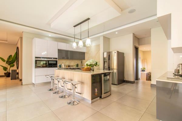 The house welcomes you with a double volume entrance hall leading to the massive kitchen and formal dining area on the right, cinema or gym room to the left and family rooms straight ahead, heated with gas fireplace. The 5th bedroom is situated on the ground floor, the rest of the bedrooms are upstairs together with a private pyjama lounge.