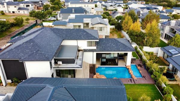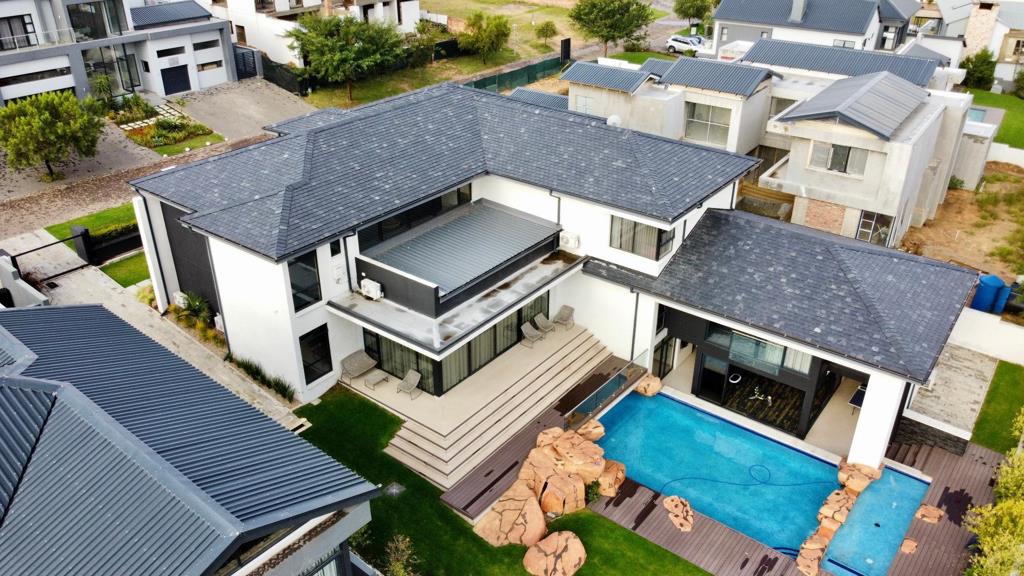 Modern stunner with city views, gym, cinema room and loads of space and top features. It is situated on a large stand and was completed in 2021. All the rooms are spacious and sunny and feature generous windows to showcase the views and cityscape. Chrystal chandeliers add panache and quality to the home. Separate massive room was dedicated for a cinema room, fit for at least 12 seater. The dining room is open plan to the modern kitchen and overlooks the formal lounge. A separate lounge area is tucked away and ideal for a kids play area or a lounge to the guest suite. Downstairs you also have a guest bedroom en suite with shower, a study and a guest toilet.the top floor offers a landing area with space for a reading corner, a cosy pyjama lounge, and 4 massive bedrooms, all en suite. The main bedroom is luxurious and showcases a jacuzzi bath and tinted cabinetry in the walk-in closet.The home has a 3rd level, in line with the swimming pool, offering a private gym, covered play room, laundry room, store-room can can double up as a craft room or 6th bedroom, and staff quarters.The whole house looks out onto the manicured garden with massive pool sized 6x10 m, and a 2x6 kids jacuzzi pool, set in a rock water feature.Central aircon, gas fireplace, separate cooker in the scullery, gas and electric stove, plasma TV, built-in fridge-freezer, imported italian cabinetry throughout, are several of the top features of this magnificent home.