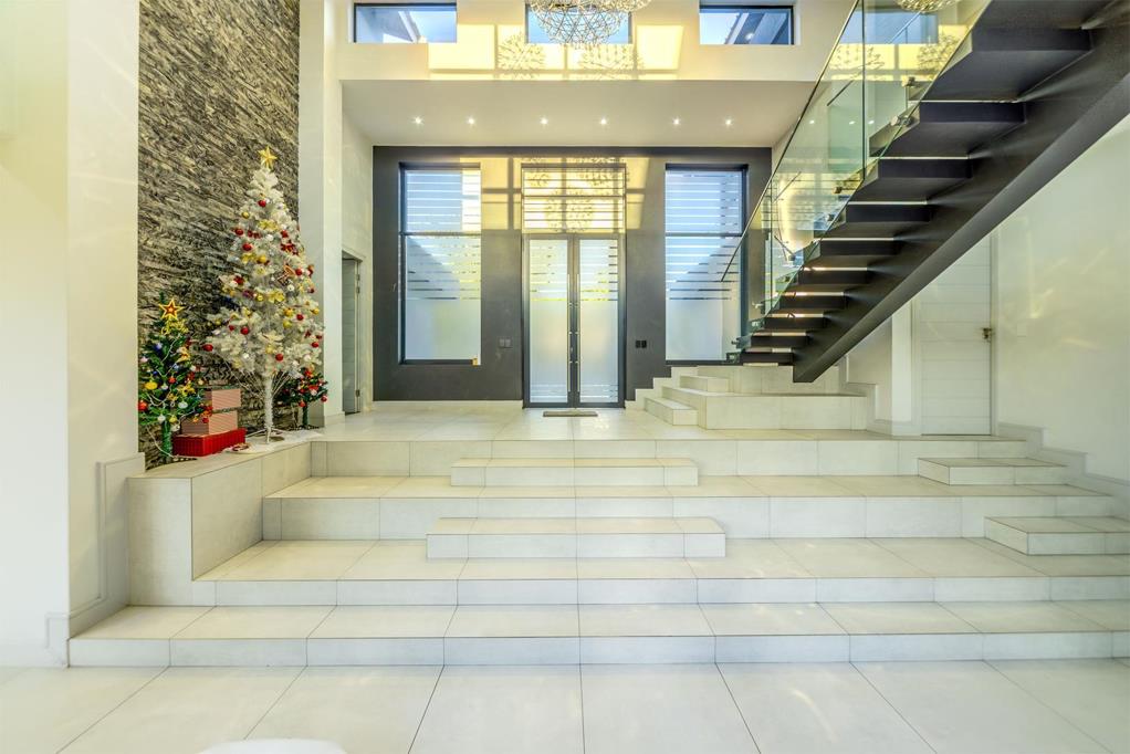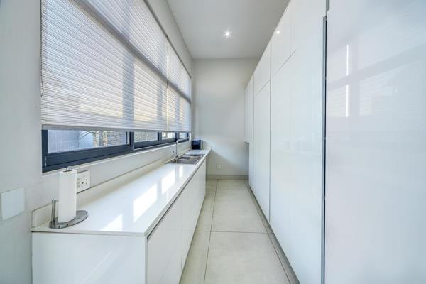 This home does not only cater to personal comfort but also to practical needs with double garages on either side, both providing direct access into the home, and additional parking space for up to 8 vehicles. Back-up power, sophisticated home automation, and staff quarters with a bathroom ensure that every need is met with advanced technology and thoughtful design. Integrated Aircon through out the home assists with temperature control throughout the year.