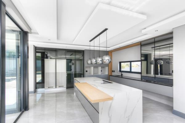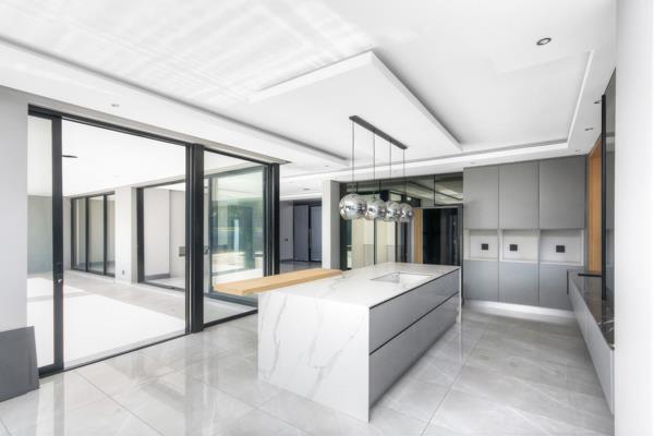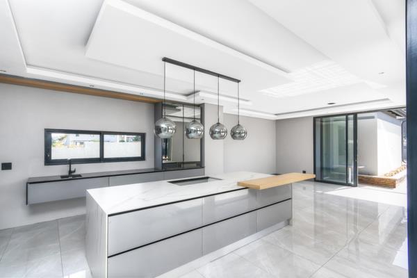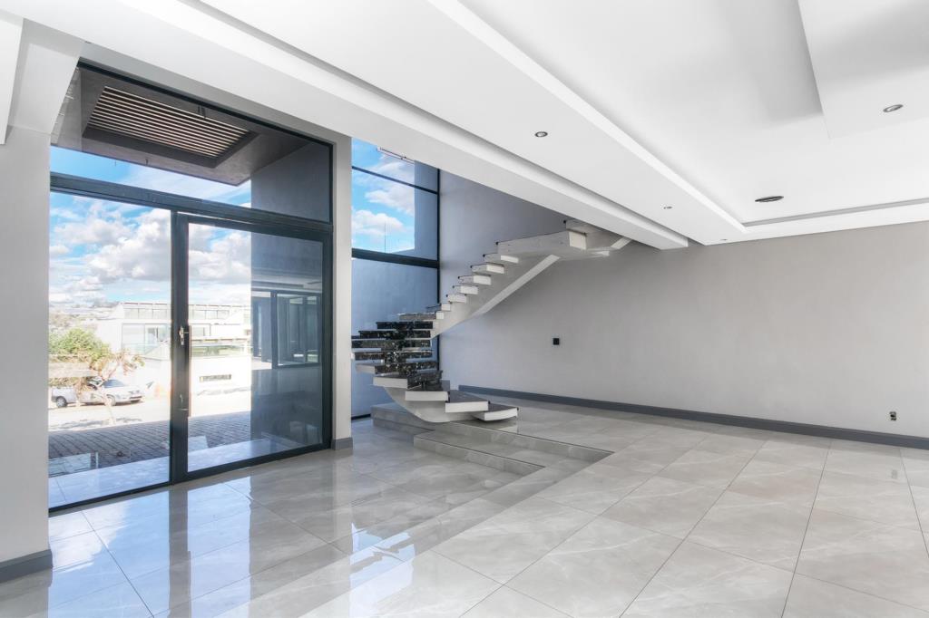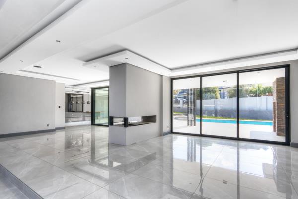 Full-length glass sliders span the width of the home, inviting natural light to flood the interiors while opening out to a large, covered patio with a built-in braai and paved entertainment areaperfectly positioned to overlook the sparkling pool and manicured, walled garden. A private guest suite is thoughtfully located on the ground floor, offering comfort and privacy for visitors.