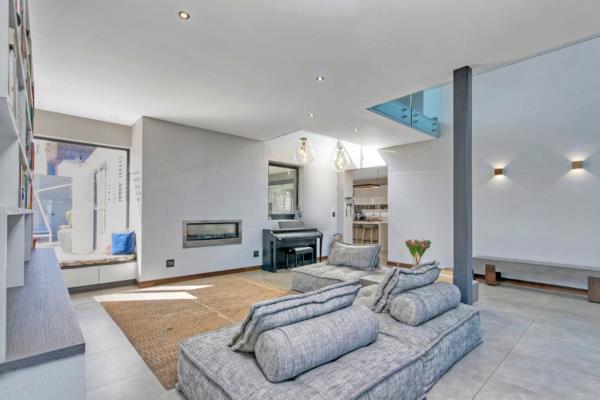 The heart of the home is the expansive open-plan entertainment lounge, elegantly tiled and designed for year-round comfort. Large glass windows flood the space with natural sunlight, while a sunny built-in bay window bench and a cozy gas fireplace create a warm and inviting ambience for winter evenings.