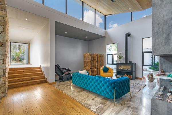 All flowing out to a captivating, wrap-around garden, a cozy fire pit boma, and a covered patio, complete with a built-in braai, ideal for entertaining or enjoying peaceful moments in nature.