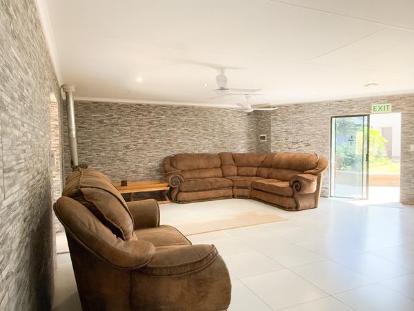 Manicured garden, picnic area, braai place, undercover lapa with fireplace, outdoor bar