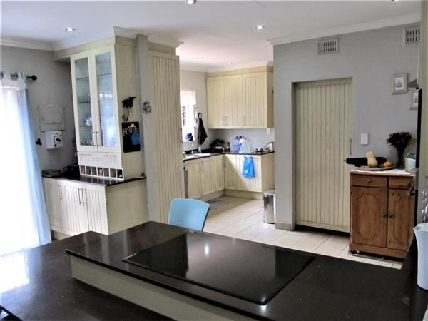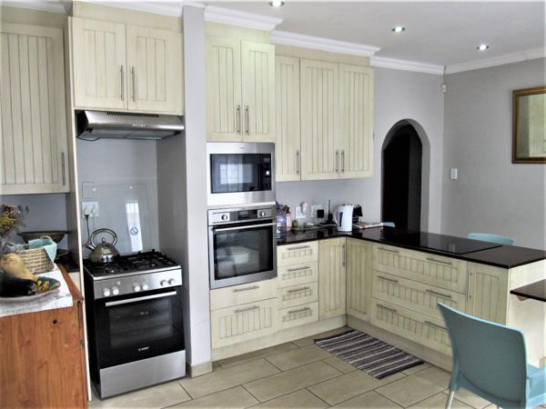 The neat kitchen is spacious with ample cupboard space, scullery, granite tops, breakfast nook, a conventual AEG stove, as well as a gas stove.