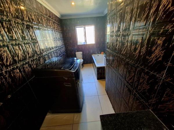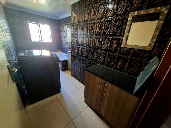 THIS BEUTIFULL HOUSE OFFERS THREE ,TWO CARPORT ONE FLATLET ONE BATHROOM DINNINGROOM LOUNGE KITCHEN WITH MELAMINE COUNTERTOPS EYE LEVEL OVEN AND UNDER ELECTRIC HOB PANTRY SECURITY GATES AND BUDGLARBARS COVERED PATIO.