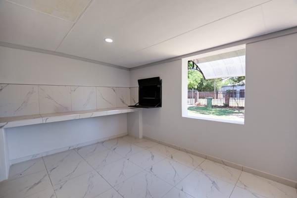 - An impressive entertainment area featuring a built-in braai, ideal for gatherings, and overlooking a lush, newly landscaped garden