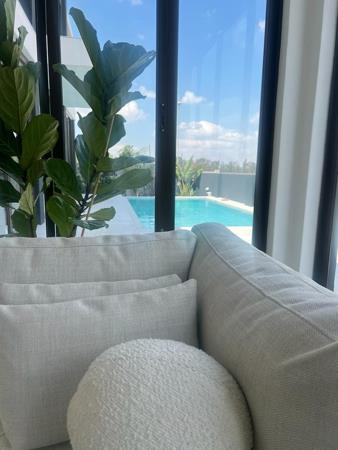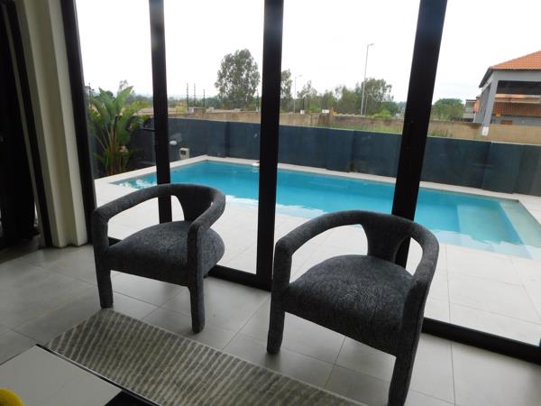 The heart of the home is its open-plan layout, designed for effortless entertaining and family comfort. Glass doors open to a private patio and pool area, creating a seamless indoor-outdoor flow. Upstairs, generous bedrooms with ample cupboard space provide peaceful retreats for every family member.