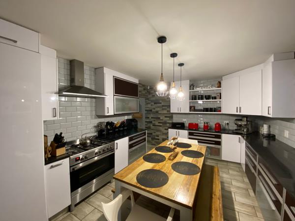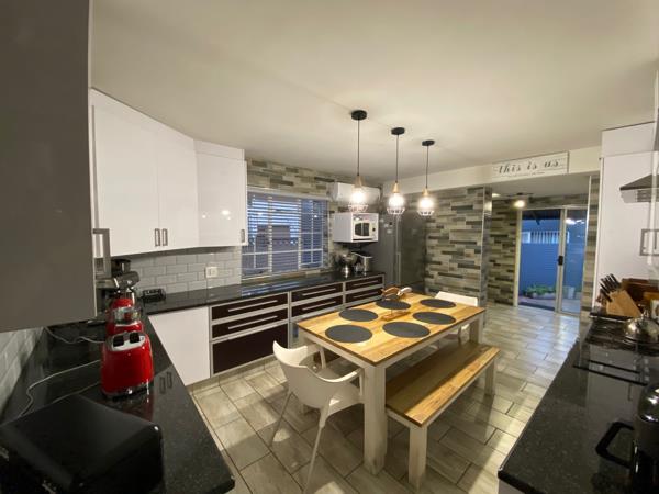 All four bedrooms are well-sized, fitted with built-in cupboards and air conditioners. Three of the four bedrooms have en-suite bathrooms. Outside is an entertainer''s dream with a Jacuzzi, built-in bar, and braai area, as well as a sparkling swimming pool. The garden is kept lush all year round with an irrigation system. There is also a separate laundry room and a store room.