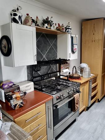 The kitchen is spacious and well equipped and offers ample cupboards and packing space.