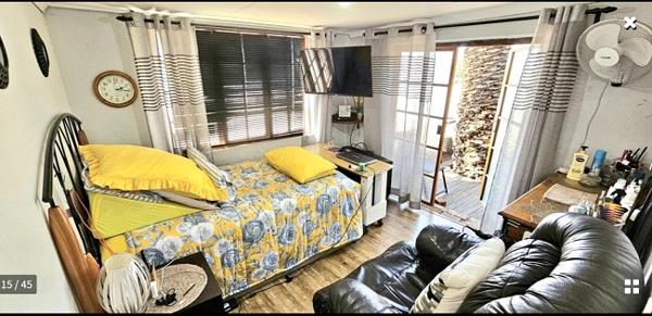 To provide extra space for quests, or room for a grown up child, or to rent out for extra income, there is a complete one-bedroom flatlet with a patio and 2 parking spaces. Current rental income: R6000.00 per month